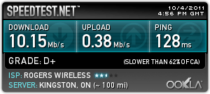 While it’s still faster than my DSL connection, it’s not LTE. I got similar results in the Toronto suburbs of Markham, Pickering, and Vaughn. I checked the Rogers LTE coverage map and discovered that the LTE coverage in Toronto largely means the City of Toronto. Don’t expect to get LTE speeds very far outside the the 416/647 area code. The same is likely true in Ottawa, Montreal, and Vancouver. This will of course change as Rogers extends the LTE network to cover more of the population.