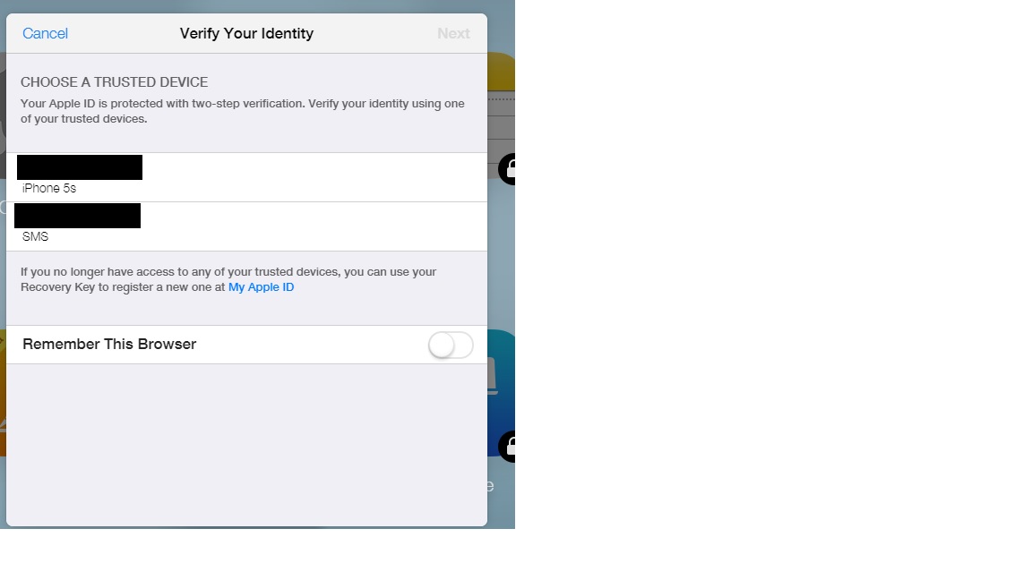 This allows me to choose the device that I want the verification code to. Once I click next (top right in grey), I’ll be displayed with a prompt that allows me to enter the code. Then I get access to my iCloud.com account. I also note that I continue to receive an email when their Apple ID is used to sign into iCloud via the web browser which is something that I noted previously. This move will make iCloud accounts a whole lot more secure than they were previously and it should reduce if not almost eliminate the ability for someone to hack your iCloud account via social engineering or by brute force. Just like a bunch of celebs found out the hard way. Thus this is a very good time to use a strong password as well as using two factor authentication on your iCloud account.